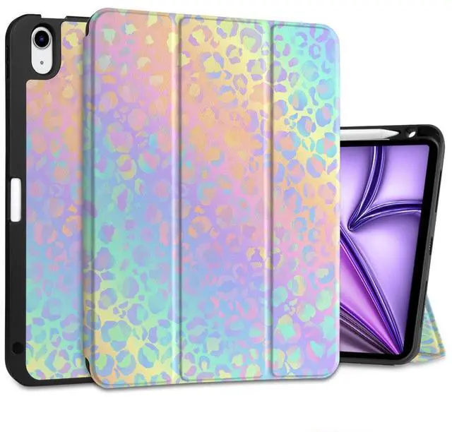 DONGKE for iPad Air 11 Inch Case M3 2025 / M2 2024 & iPad Air 5th 2022 / 4th Generation 2020 10.9 Inch, Ultra Thin Soft TPU Back Cover with Pencil Holder Support Auto Wake/Sleep, Colorful Leopard