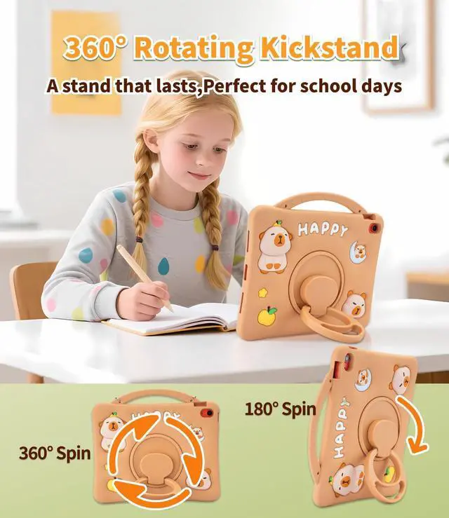 360° Rotating KickstandEnjoy hands-free viewing from any angle! Whether drawing, watching, or typing, the rotating kickstand adapts to your needs and folds away when not in use.