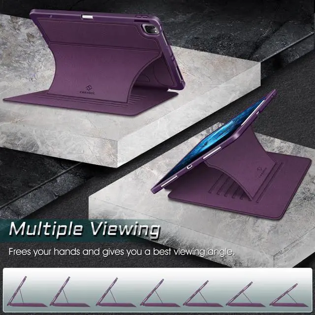 CaseBot Magnetic Case for iPad Pro 12.9 -inch 6th Generation 2022, Multiple Angle Shockproof Rugged Stand Case, Soft TPU Back Cover w/Pencil Holder, Also Fit iPad Pro 12.9" 5th/4th/3rd Gen, Purple