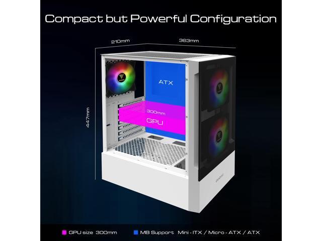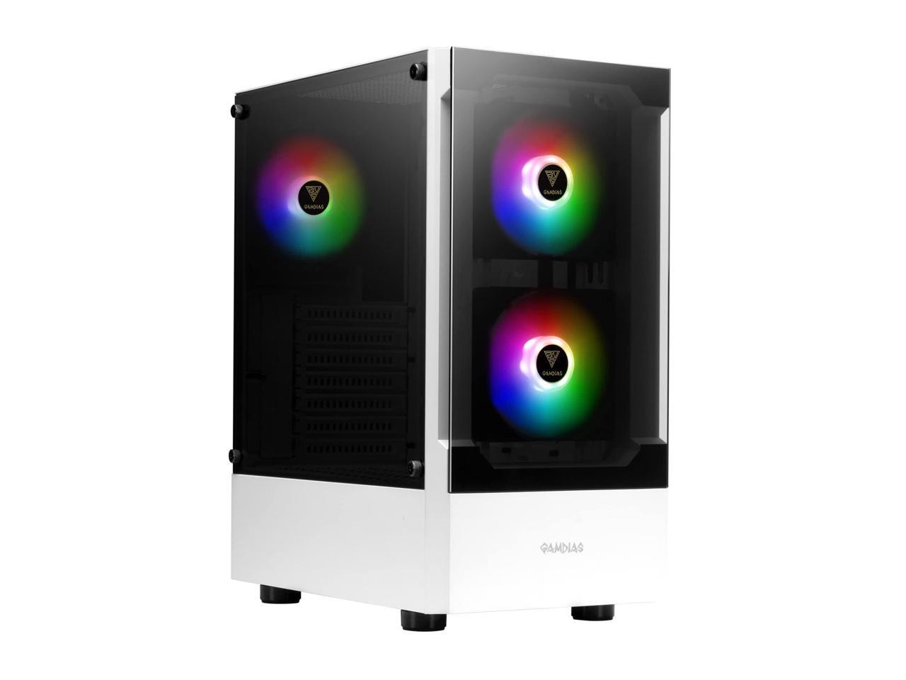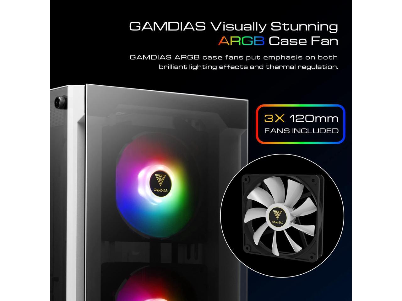 GAMDIAS White RGB Gaming ATX Mid Tower Computer PC Case with Side Tempered Glass Panel and a Magnetic Dust Filter & 3 Built-in 120mm ARGB Fans
