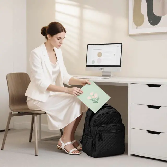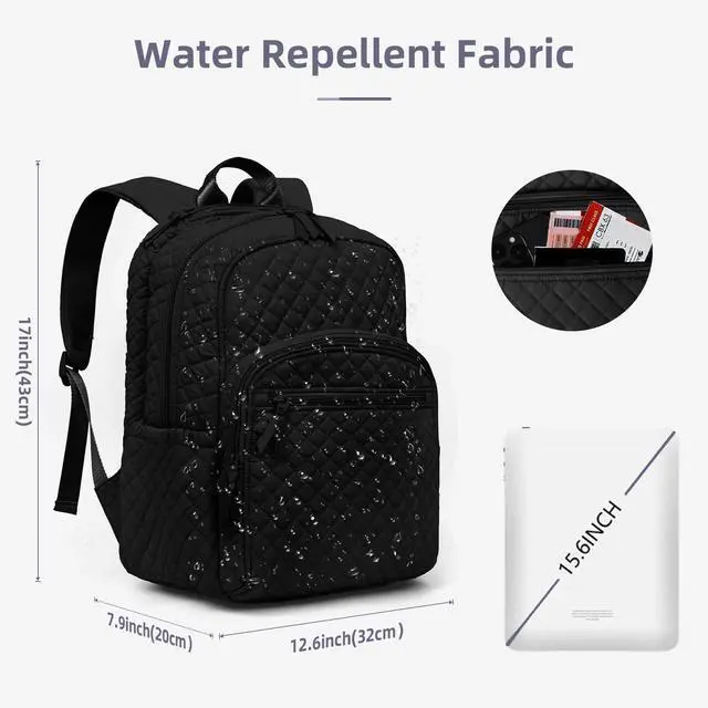 RosaRubus Backpack for Women, College Backpack, Quilted Casual Daypack, Waterproof Bookbag for 17Inch Laptop
