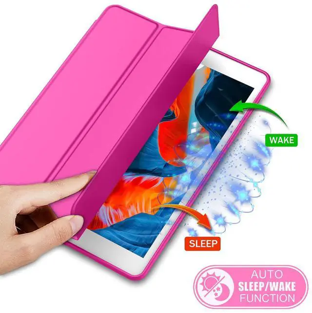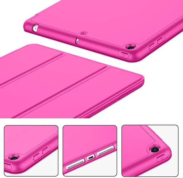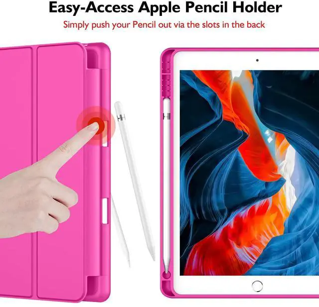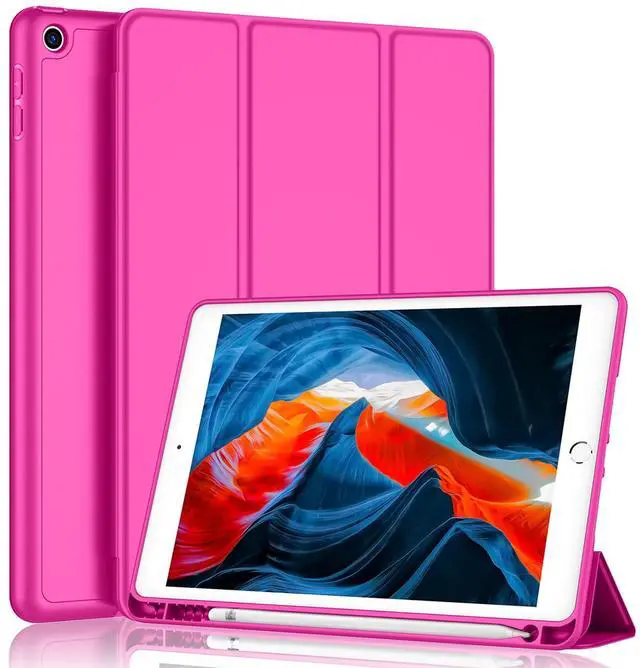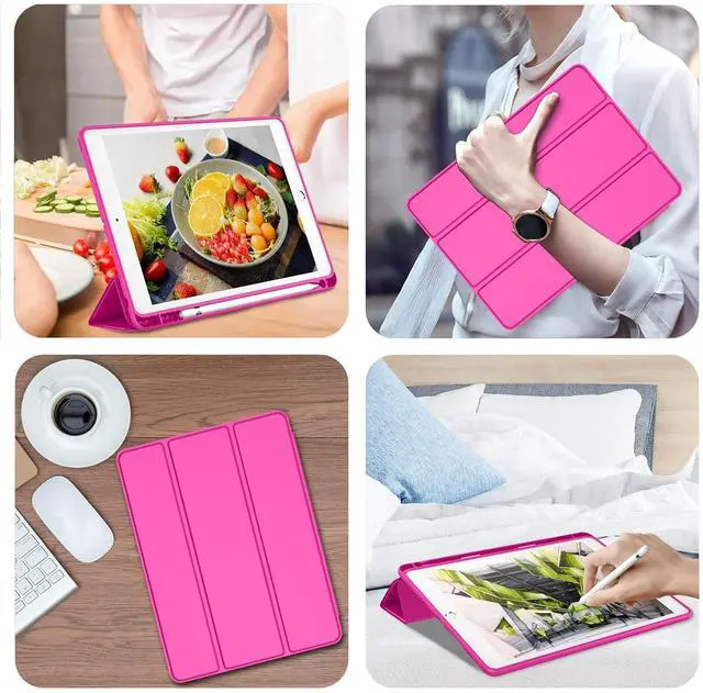 iMieet iPad 9th Generation Case 2021/iPad 8th Generation Case 2020 10.2 Inch with Pencil Holder, iPad 7th Gen 2019 Case with Soft Baby Skin Silicone Back, Auto Wake/Sleep Cover (Rose Red)