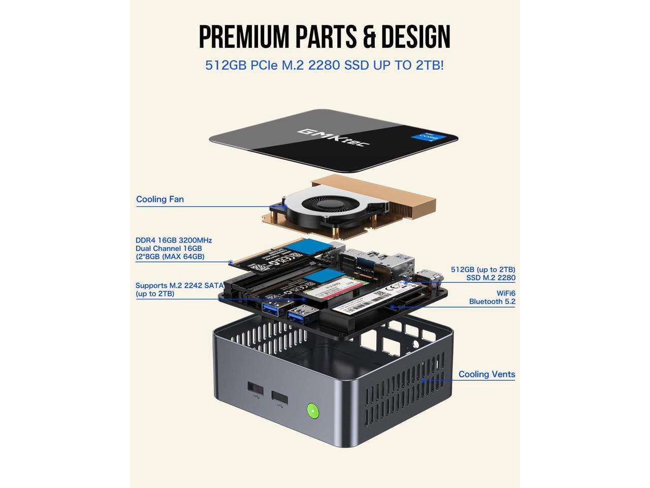 - 16GB DDR4(8GB*2) and 1TB NVME SSD-Desktop PC Comes with 16GB dual-channel DDR4 and 1TB SSD M.2 2280 NVMe (PCIe3.0), in addition, M.2 2242 SATA can be expanded to 2TB, runs faster than previous Core i5 / AMD Ryzen 5 processors and offers fast response whether it's gaming or rendering rich 3D graphics