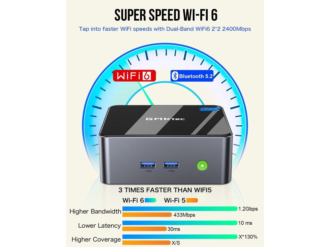 - 2.5Gbps LAN & WiFi6 + BT5.2-GMKtec mini PC dual band WiFi 2.4G+5G networking and Gig
