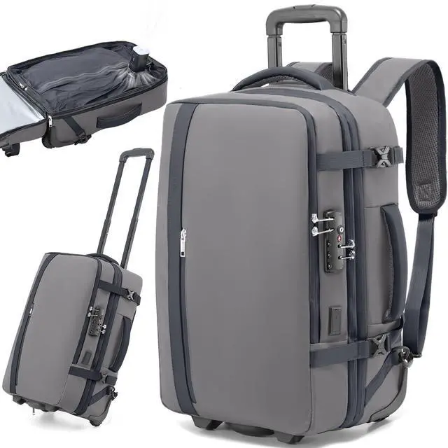 Fanwoli Vacuum Rolling Travel Backpack, Carry On Luggage with TSA Lock & Anti Theft Zipper, 70L Expandable Airback with Compression Pump, Waterproof Laptop Bag Ideal for Flight & Business