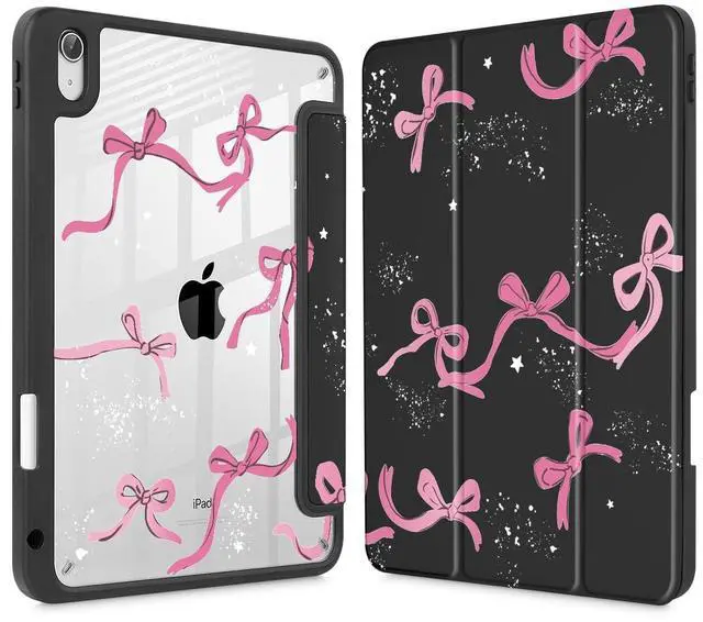 Tuiklol Case for iPad Air 11'' (M3 2025/M2 2024) 6th Gen/iPad Air 10.9 '' 2022 2020 Air 5th /4th Gen, Buit in Pencil Holder with Shockproof Cover Clear Transparent Back Auto Wake/Sleep, Bow-Black