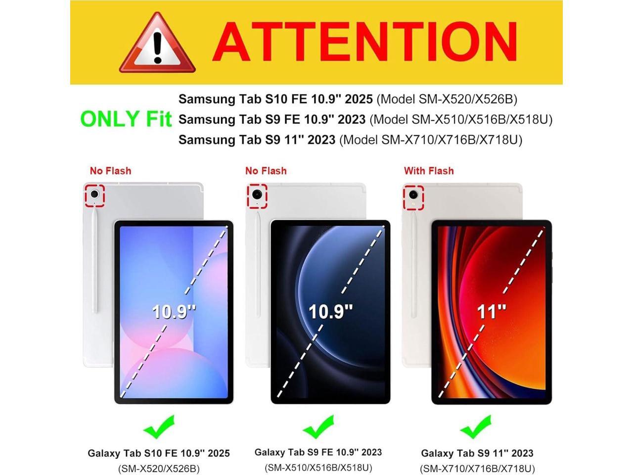 - CompatibilityDesigned specifically for Samsung Galaxy Tab S10 Lite 5G 10.9 inch (Model SM-X400/X406B) 2025 Release, Samsung Galaxy Tab S10 FE 5G 2025 Release 10.9 inch (Models: SM-X520/SM-X526/SM-X526B) Samsung Galaxy Tab S9 FE 5G 10.9 inch (Models: SM-X510/X516B/X518U) and also compatible with Galaxy Tab S9 11 inch (Models: SM-X710/X716B/X718U) 2023 Release. Please verify your tablet's model number before purchasing to ensure a perfect fit.