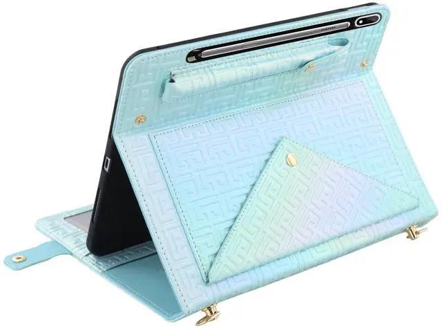 Bling Laser Iridescent Galaxy S10 Ultra Case / Galaxy S9 Ultra Case / Galaxy Tab S8 Ultra Case for Women, Smart Folio Stand Case with Handle & Shoulder Strap