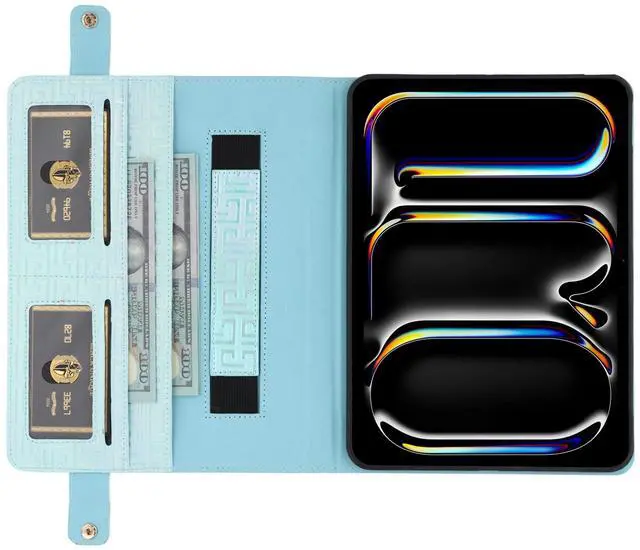 The external pocket and internal multiple slots are designed to store business cards, ID, credit cards, bills, tickets or invoices at any time and any place. Also comes with a pencil holder pocket for your Apple Pencil.