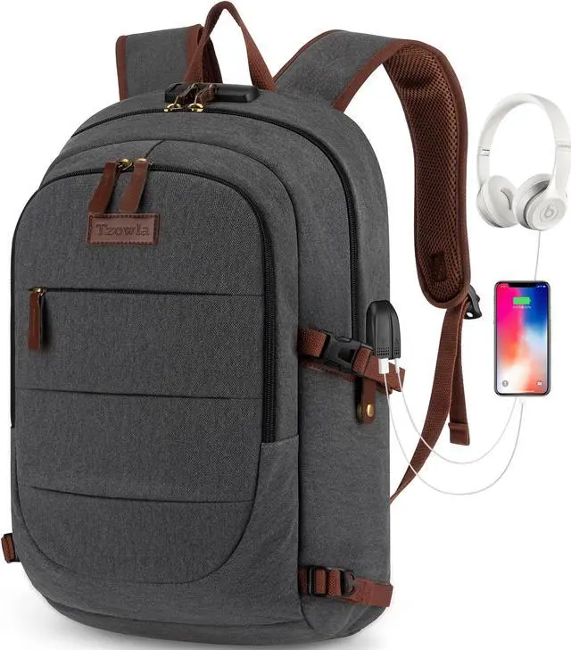 Canvas Laptop Backpack-Anti Theft Bag for Men Women, Rucksack Fits 15.6I nch Laptop, Work Travel with USB Charging Port and Lock