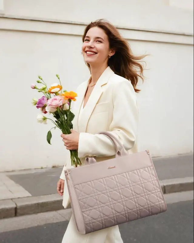 Elegant & Stylish Design: Featuring a chic quilted pattern, this laptop tote bag combines simplicity with fashion, ensuring a stable upright position that prevents tipping. It's the perfect accessory for the modern professional woman.