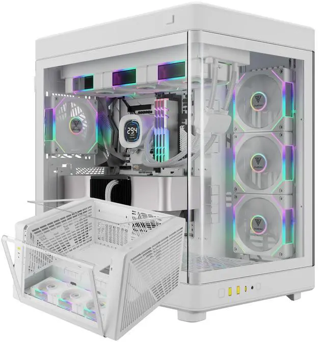 Bottom: 3 x 120mm Drive Bays 2 x 3.5; or 1 x 2.5; +1 x 3.5; (HDD Cage) 2 x 2.5; (HDD Cage) + 3 x 2.5 '' (SSD Bracket) I/O Port USB 3.0 x2, Type C x 1, HD Audio x1, LED Control x1