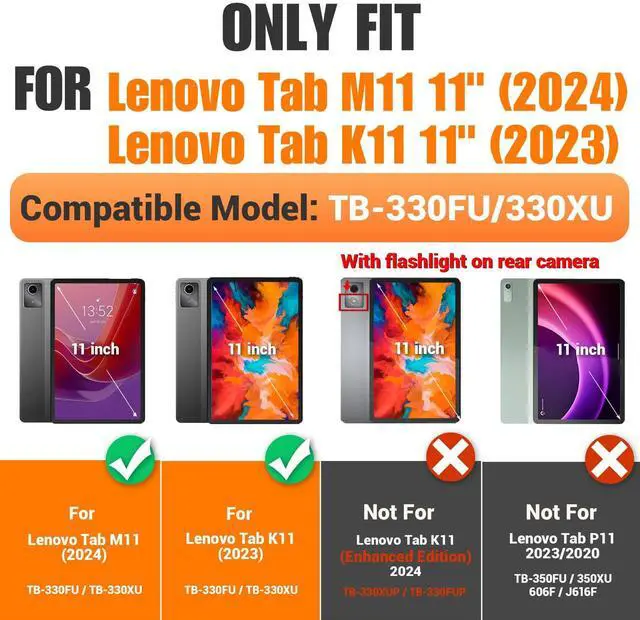 Compatibility: ONLY Compatible with Lenovo Tab M11/Idea Tab 11"/K11 Gen 2 2024/2025 Released 11''. (Model: TB-330FU/ TB-330XU/ TB-336FU/ TB-331FC). NOT for P11 or Idea Tab Pro. Please confirm models of tablets: "Settings-System-About Tablet-Model" before purchase