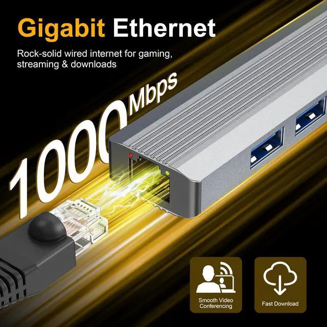 In today's world of sleek, port-limited devices, staying connected to all your essential peripherals can be a challenge. Our 5-in-1 USB C Hub is meticulously designed to expand the single USB-C port on your laptop or tablet, adding Gigabit Ethernet, USB 3.0, and data USB-C ports. It delivers reliable connectivity and speed you need for work, creativity, and entertainment.