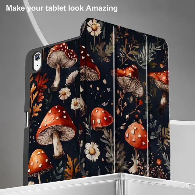 May Chen for iPad (A16) 11th Generation Case 11 Inch 2025, iPad 10th Gen Case 2022 10.9 inch, Trifold Stand with Auto Wake/Sleep Soft TPU Protective Stand Back Cover, Mushrooms