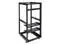 STURDY : 4-post construction, heavy-duty, SPCC cold-rolled steel can safely support up to 600 lbs of rack mounting equipment with leveling feet, and 500 lbs with casters. The black RAL9005 powder coat finish makes this solid 25u home rack resistant to scratching and rusting