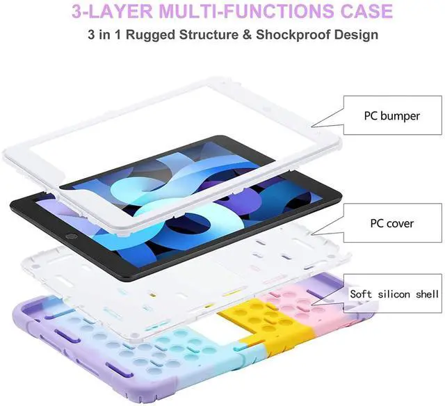 3 Layer Design iPad 10.2 Case: Three-layer structure of premium shock-absorbing TPU and durable hard polycarbonate provide a perfect protection against accidental drops, scratches, bumps and shock.