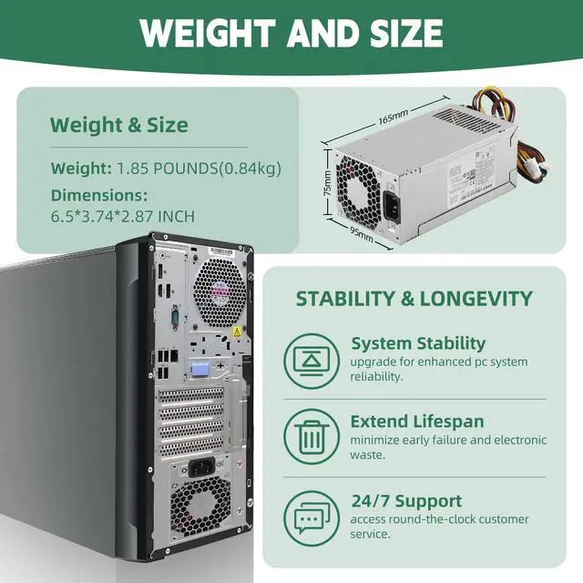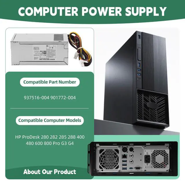 PCG007 937516-004 901772-004 310W Power Supply Compatible with HP ProDesk 280 282 285 288 400 480 600 800 Pro G3 G4