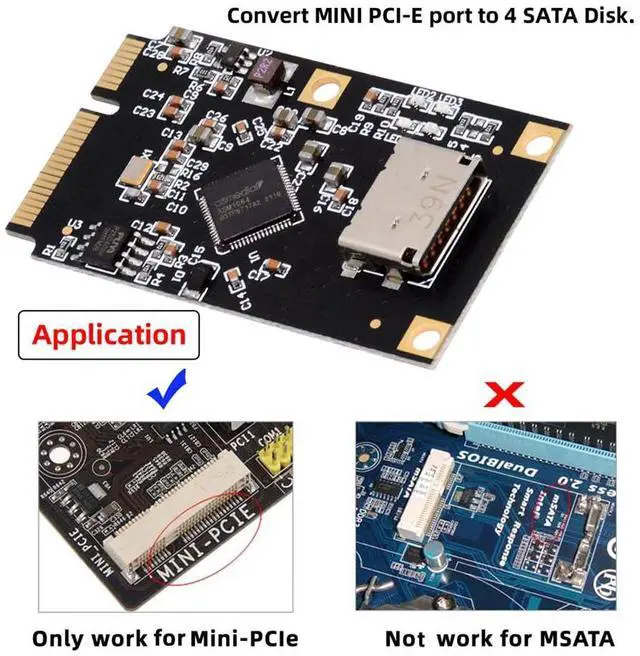 cablecc 6Gbps PCI Express Mini PCI-E to SFF-8612 SFF-8611 Oculink SATA 3.0 Four Ports Adapter Converter Disk Extension Card for SSD