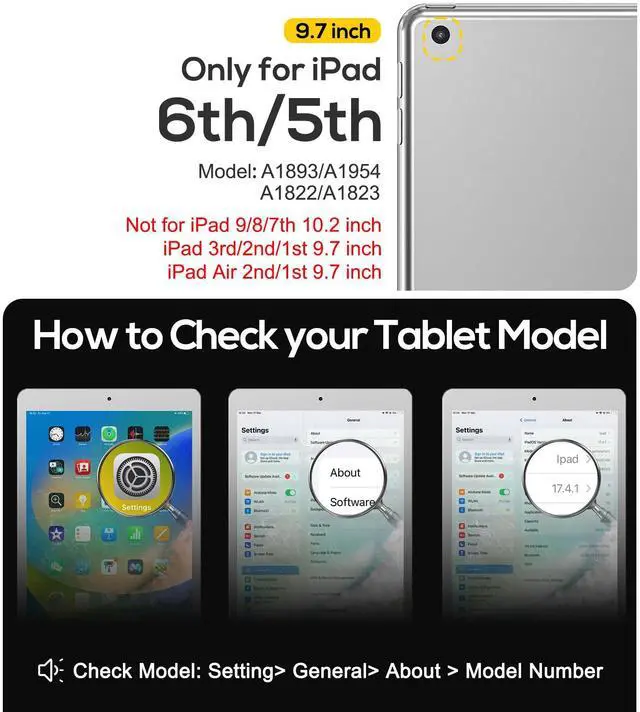 Compatibility Only fit for Apple iPad 6th Generation 9.7 inch 2018 iPad 5th Generation Case 9.7 inch 2017 [MODELA1893/A1954/A1822/A1823], WILL NOT FIT ANY OTHER MODEL. Pencil Cap Holder is included, but Apple Pencil and screen protector is not included.