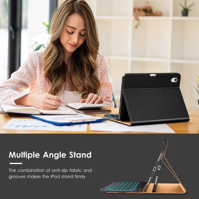 [LAPTOP-LIKE TYPING]The keys of the keyboard are scissor structure, square chocolate keycap ergonomic design.Large, well-spaced keyboard containing a full row of iPadOS shortcut keys lets you type comfortably with speed and accuracy.