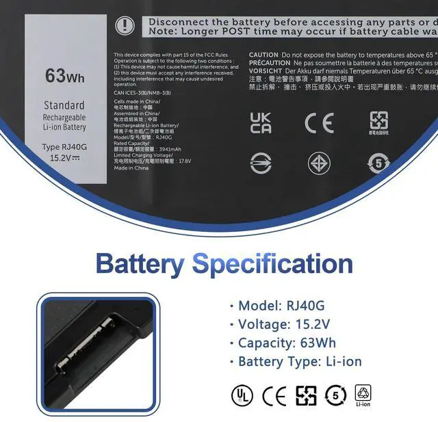 Compatible Laptop ModelsFor Dell Latitude 14 5420 series; For Dell Latitude 15 5520 series; For Dell Precision 15 3560 seriesFor Dell P137G P137G001 P104F P104F001 P104F002. (Note: Latitude 5420 5520 laptops are compatible with two types of batteries (RJ40G-63Wh and WY9DX-42Wh), please select the correct battery model according to the original battery of your laptop.)