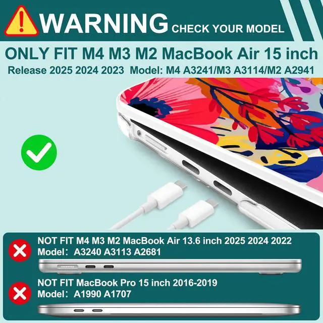 Compatible With - Only for M4/M3/M2 MacBook Air 15" 2025 2024 2023 (Only compatible model: A3241/A3114/A2941). Please confirm the model on the bottom of the MacBook before ordering
