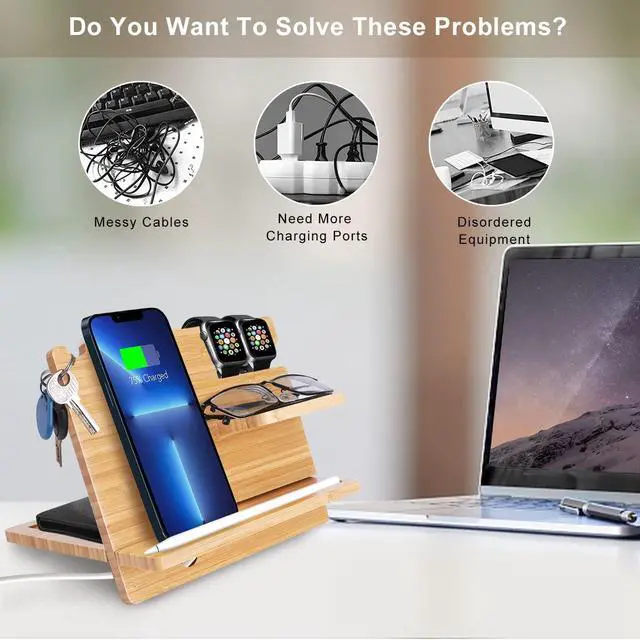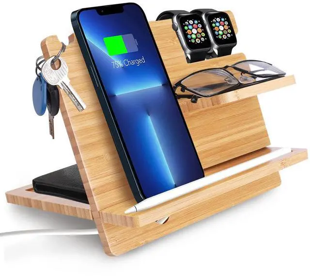 day gifts from son: Bedside organiser stand charging station mobile phone stand docking station shelf will charge your mobile phone and keep your daily necessities at your fingertips, an eye-catching and very practical mens desk accessories, perfect for any interior decoration-classic and modern style.