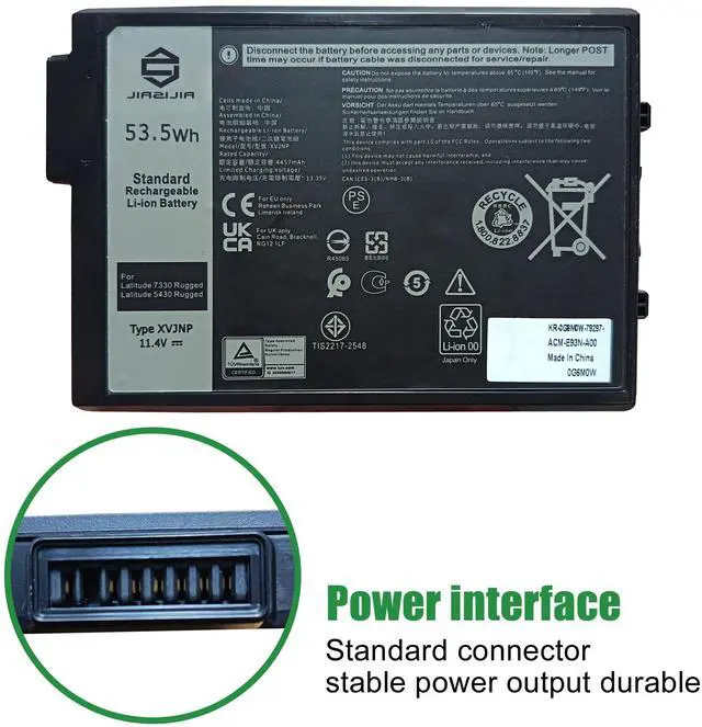 JIAZIJIA XVJNP 451-BCWQ Laptop Battery Replacement for Dell Latitude 5430 7330 Rugged Extreme Pro Rugged 14 RB14250 Pro Rugged 13 RA13250 P148G P148G001 P149G P149G001 Series G6M0W 6JRCP 11.4V 53.5W h