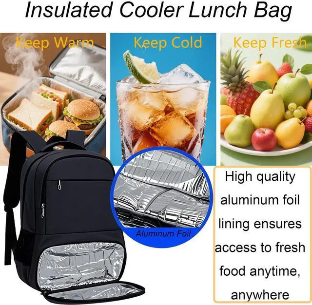 Special design: This backpack has a lunch box made of waterproof aluminum, which can keep food warm or cool; Food container size is 12 x 6 x 4 inch(can hold up 9 cans)
