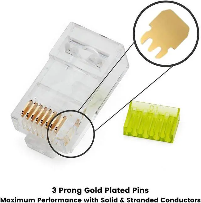 100 PIECE RESEALABLE BAG. These transparent gold plated RJ45 plugs are sure to make your install hassle free.