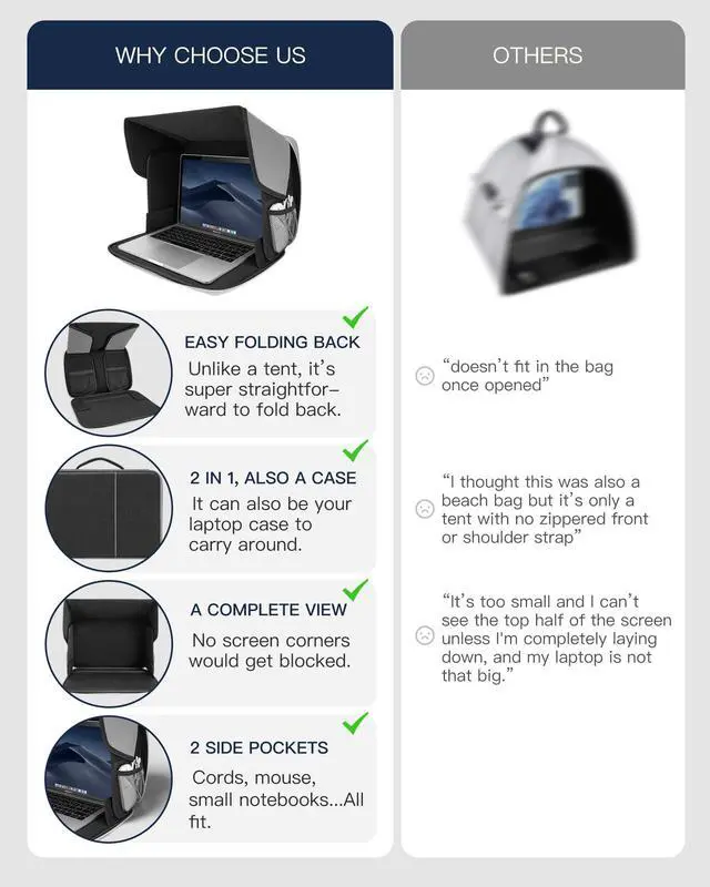 Laptop Sun Shade, Fits 13-16 inch Laptop, UV-Heat Reflective & Water-Resistant Material, Easy to Carry Computer Case for Working Outside, Travel, Beach