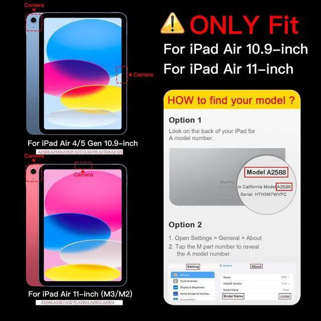• [Compatible Model-1] -Designed for iPad Air 11 inch M3 2025 Released (Model Number: A3267 A3270) & for iPad Air 11 inch M2 2024 Released (Model Number: A2902/A2903/A2904)