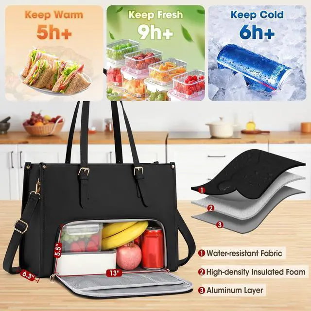 2-in-1 Work Bag with lunch Compartment: Say goodbye to the hassle of carrying multiple bags! This convenient laptop tote bag for women can hold everything you need for everyday use. It can be used as a laptop bag and also as a lunch bag to keep your lunch fresh. It's for busy women, teachers, nurses, commuters, college work, travel, picnics, or leisure time.