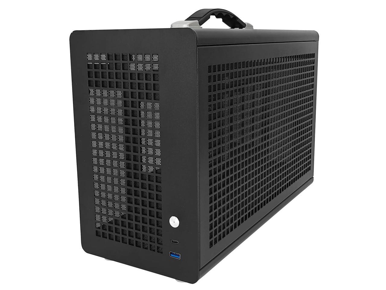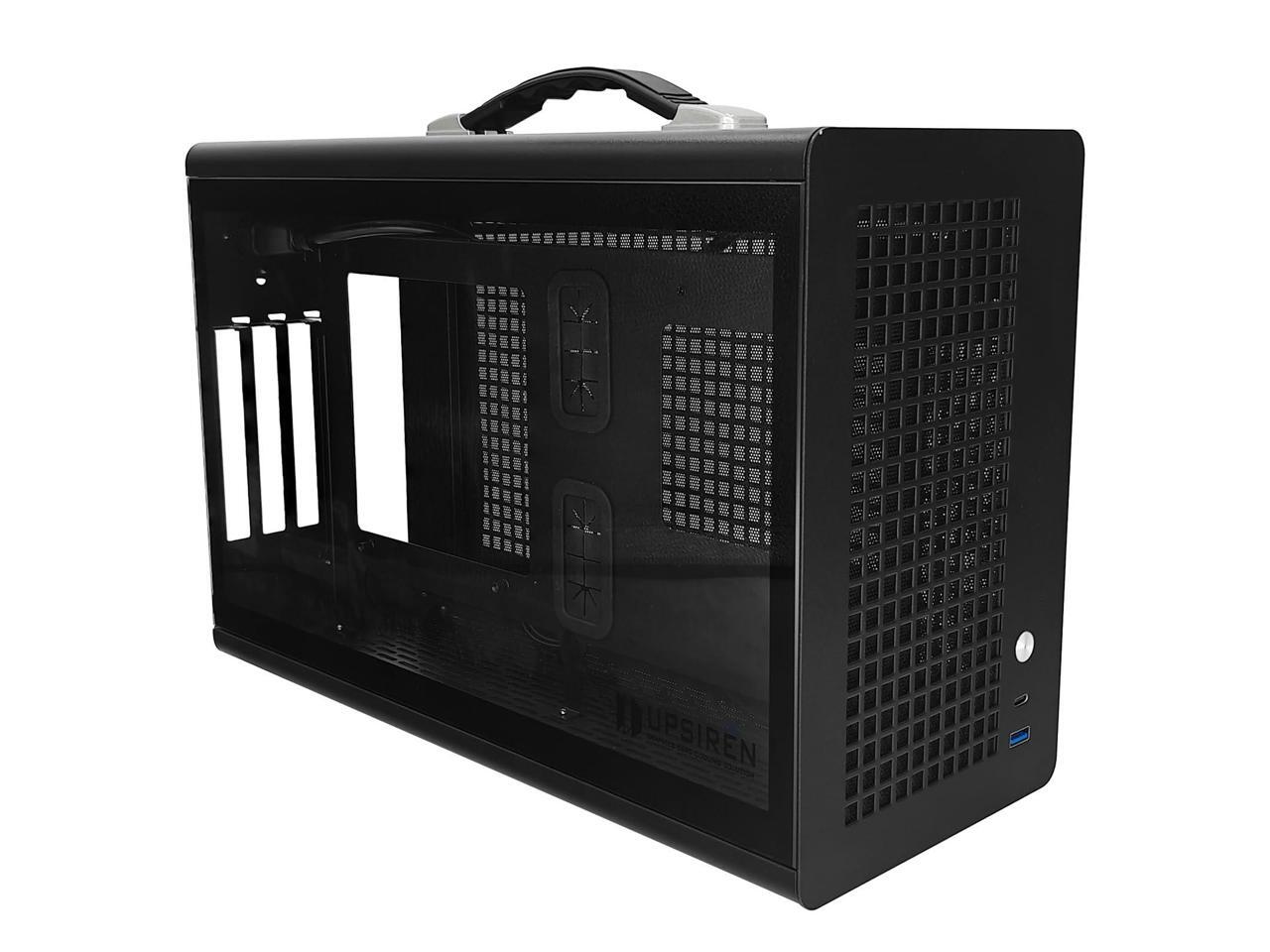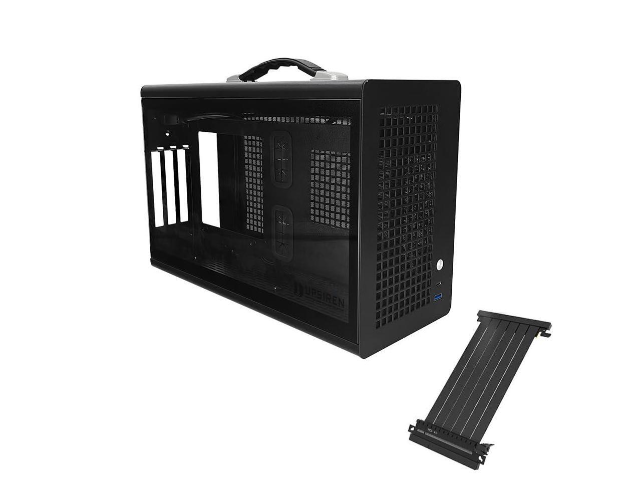 UPSIREN MD-1 Mini Portable ITX Computer Case, MINI-Tower CASE, Full Side Transparent DIY Desktop Case with Handle, Support 380MM GPU Size with PCIE 4.0 Cable (Black with Pcie 4.0)