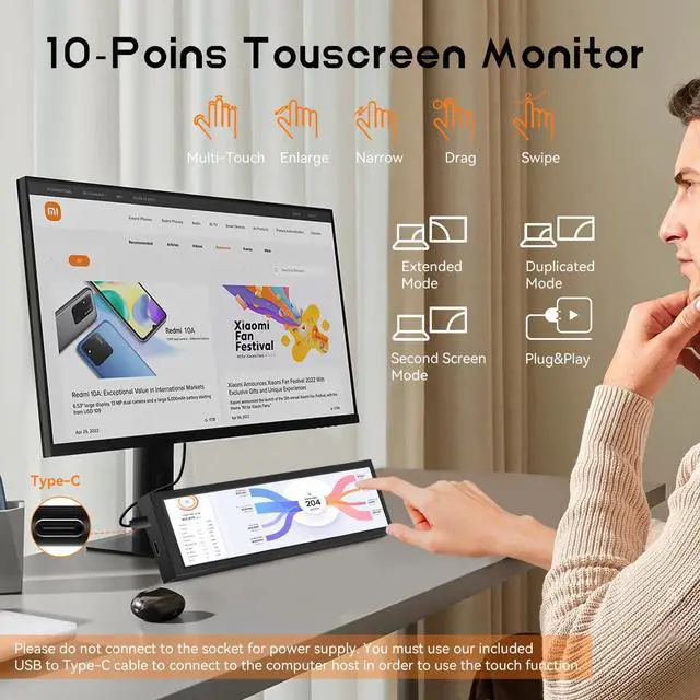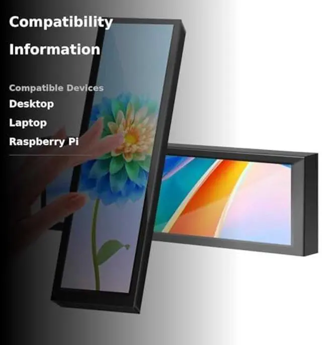 1. Touch Screen & High Resolution: The screen of the display supports touch, providing convenience for you to use the display, Resolution: 1920 × 480, It is the best choice for computer subscreen and industrial computer. Response time: 30s (Tr+Td); Refresh frequency: 60Hz; IPS full view, display size: 233 × 66 mm, can be used as on-board display, chassis display, etc. Contrast: 800:1 (Typ.) (TM), package includes: 1 * 8.8-inch display, 1 * hdmi cable, 1 * power cable, 1 * user manual.