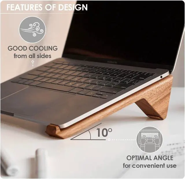 Universal Fit for All Laptops: Two separate walnut blocks adjust to your devices width and size Compatible with MacBook, HP, Dell, Lenovo, and all notebook types