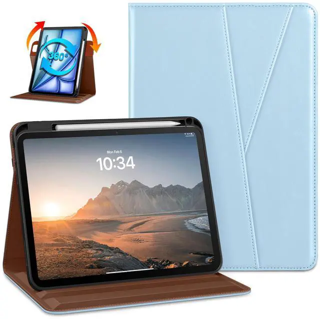 DTTO Rotating Case for iPad Air 11-inch M2 (2024), iPad Air 5th Generation (2022)/iPad Air 4th Gen (2020), 360 Degree Swiveling Premium Leather Folio Stand Cover with Pencil Holder, Ice Blue