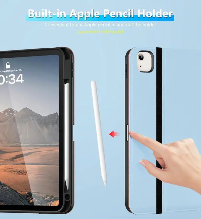 Built-in pencil holder, Pencil holder securely carries and protects your Apple Pencil Pro or Apple Pencil (USB-C) wherever you go. Please Note: Apple pencil not included