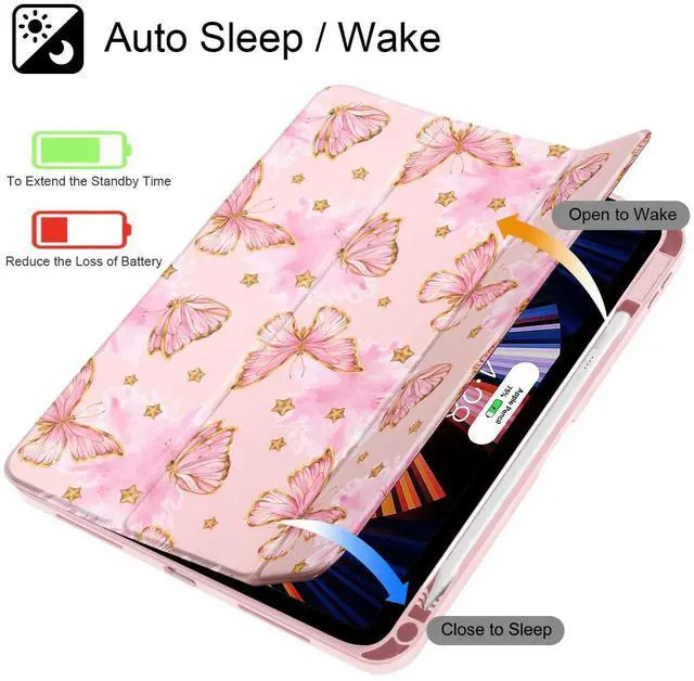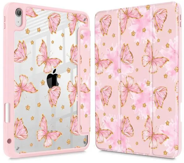 Tuiklol Case for iPad 11 inch (A16 Chip) 2025 Gen 11th / iPad 10.9 inch 2022 10th Gen, Buit in Pencil Holder with Shockproof Cover Clear Transparent Back Shell Auto Wake/Sleep,Pink Butterfly
