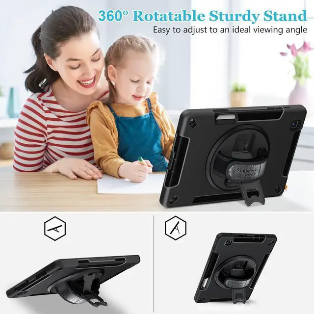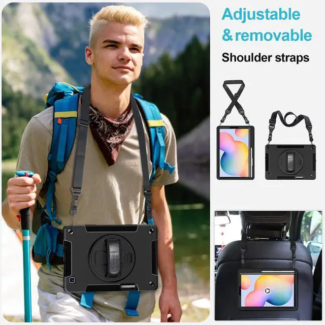 Case for Galaxy Tab S6 Lite 10.4 Inch 2024/2022/2020 : Military Grade TPU Shockproof Cover with Screen Protector - Stand - Shoulder Strap - Handle - S-Pen Holder for Samsung Tablet S6 Lite - Black