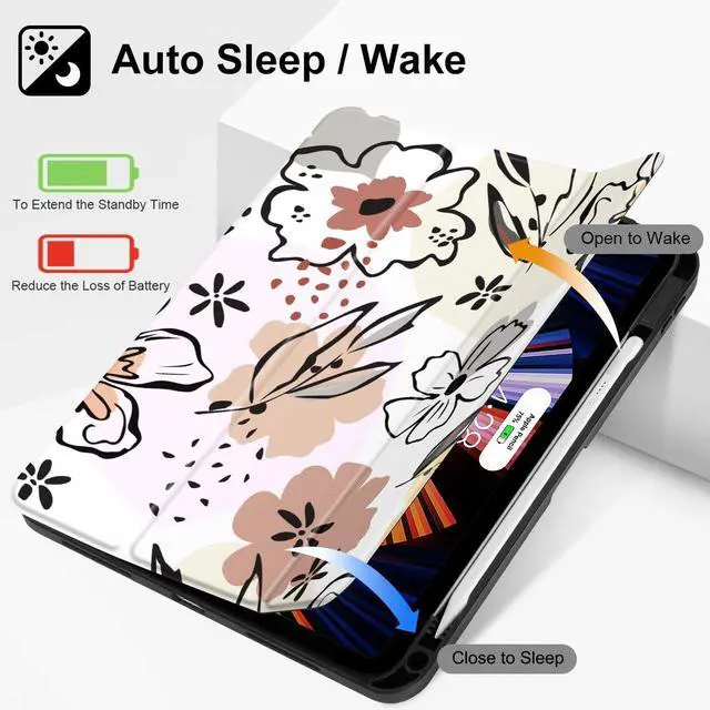 Multi-function Stand: Slim Lightweight Trifold Stand provides viewing and typing stand mode, Magnetic smart cover supports auto wake & sleep function. Powerful magnet secures the case closure, more convenient to snap on and off the tablet, extend the battery life.