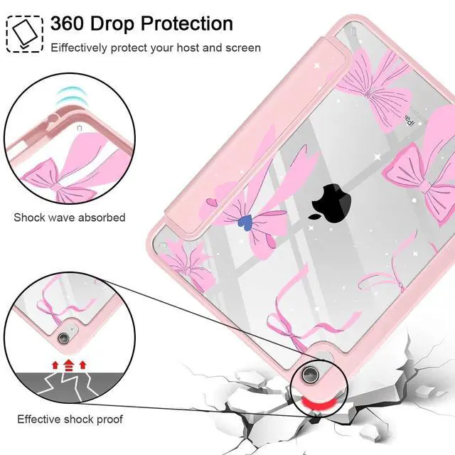 May Chen for iPad (A16) 11th Generation Case 11 Inch 2025, iPad 10th Gen Case 2022 10.9 inch, Built-in Pencil Holder with Shockproof Cover Clear Transparent Back Shell Auto Wake/Sleep, Pink Cute Bows
