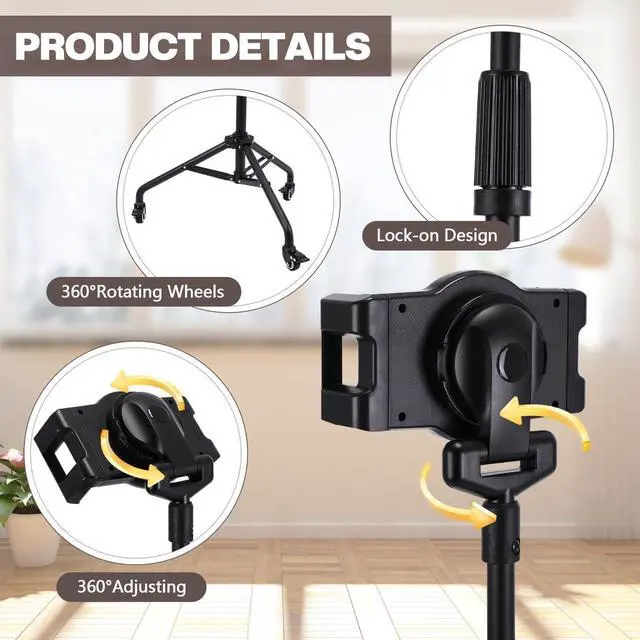 Features: Users can adjust the height of the tablet floor stand according to their needs. Whether standing or sitting, they can easily find a comfortable viewing height. This rotatable tablet stand is not only very practical, but also a good home decoration.