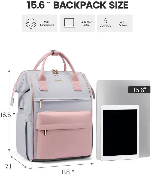The convenient luggage strap allows you to effortlessly attach the backpack to your suitcase. The anti theft pocket on the back keeps your valuables secure, and the hidden handle provides an alternative carrying option. ^^ [Versatile Use & Ideal Gift Option]Suitable for both men and women, this laptop backpack is an extremely practical multi purpose bag. Well-made womens laptop backpack is perfect for work, school, travel, daily and family vacations. As a practical and stylish gift, it's a great choice for family, colleagues, or loved ones. Lovevook backpack can always bring you the most comfortable experience.
