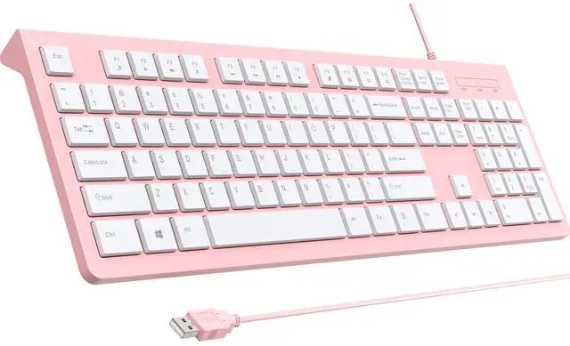 ^^ Stable Wired Connection: This pink keyboard has a 5ft cable. No signal interference, plug-and-play. For home office, study or daily use, this computer keyboard offers stable, reliable input.