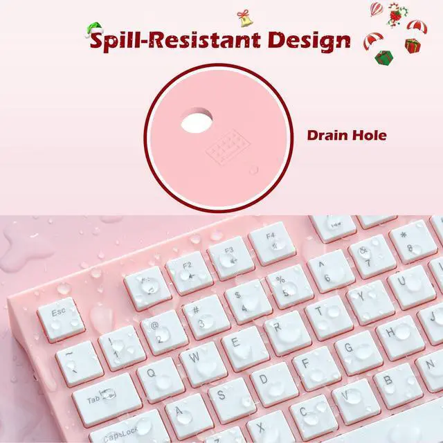 ^^ Ultra-thin & Spill-Resistant: The 0.6 -inch ultra-thin pink keyboard has low-profile keys for smooth typing. Spill-resistant design extends lifespan, making this wired keyboard a durable pick.