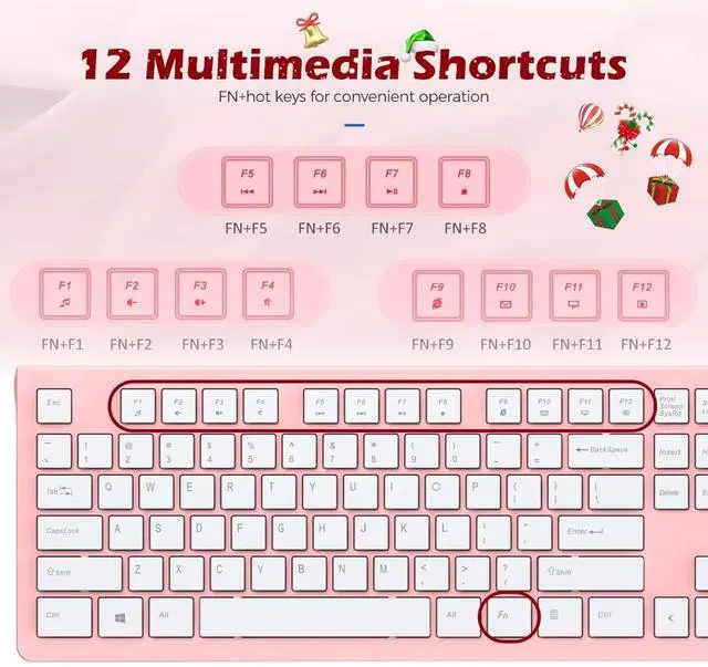 ^^ Efficient Shortcuts: With Fn combinations, this charming pink wired keyboard controls multimedia, adjusts volume, opens browsers. Turns even a plain keyboard pink into a tool for efficient work/study.