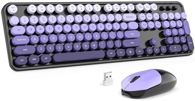 Typewriter Wireless KeyboardThe inspiration for these cute rounded keys comes from vintage typewriters offering you visual enjoyment and a retro feeling to type. With colorful key caps, make you be distinctive in the office and work full of fun ^^ Plug and PlayOne USB 2.4GH z nano receiver for keyboard and mouse, does not need any extra software, super easy to use. All you have to do is plug the USB receiver and then give them seconds to install automatically ^^ Upgrading TechnologyThe keycaps are made of ABS environment-friendly plastic characterized by ergonomic design and a comfortable feel.