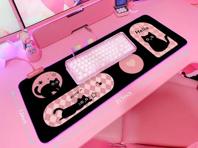 JMIYAV Pink RGB Gaming Mouse Pad 31.5x12 Inch PC XL Large Extended Glowing Led Light Up Desk Pad Non-Slip Rubber Base Computer Cute Mousepad Mat Desk Accessories Gaming Setup 47-6232